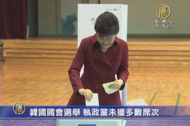 【新唐人亞太台 2016 年 04 月 14 日訊】南韓昨天舉行國會大選,選舉結果 出現16年來,第一次國會「朝小野大」的局面。總統朴槿惠的執政黨 新世界黨,失去多數黨優勢,而且在最大戰場 首都圈,拿到的席次少於三分之一,未來朴槿惠政府要推動經濟相關立法,都難上加難。