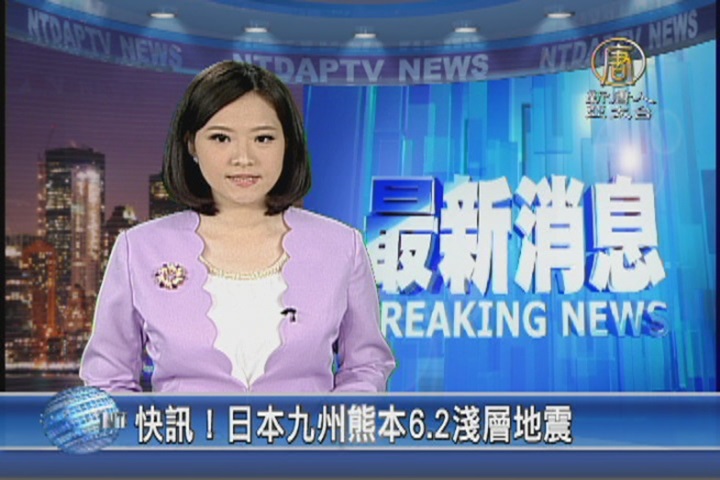 【新唐人亞太台 2016 年 04 月 14 日訊】為您插播一則快訊,根據美國地質調查局,日本九州熊本在當天晚間9點26分,發生規模6.2地震,深度只有10公里。