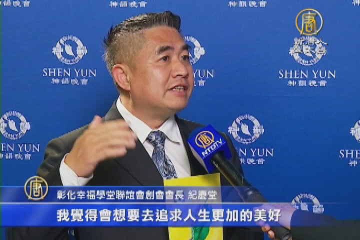 第三度看神韻的彰化幸福學堂聯誼會創會會長紀慶堂表示,每次看神韻,幸福感油然而生,心靈有歸屬感。