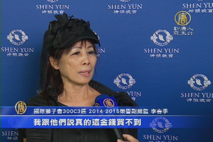 國際獅子會300C3區 2014-2015榮譽副總監 李春季:「一股力量很強大,我自己講的當然不是講什麼神話,是說真的是被碰到,然後會覺得很欣慰說,真的是很感謝神韻,今天能夠帶給世人、帶給人類,將來會是歷史的見證,我想除了神韻再沒有人可以來比擬了。」