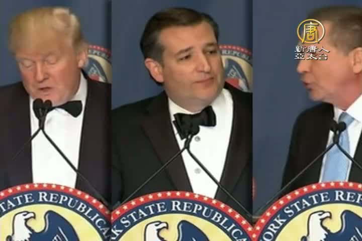 【新唐人亞太台 2016 年 04 月 16 日訊】週四晚,就在民主黨總統參選人紐約激辯的同時,共和黨總統參選人在紐約舉行了黨代表會議。各參選人不僅寄希望於下週的紐約初選,而且目光已轉向7月的共和黨全國代表大會。