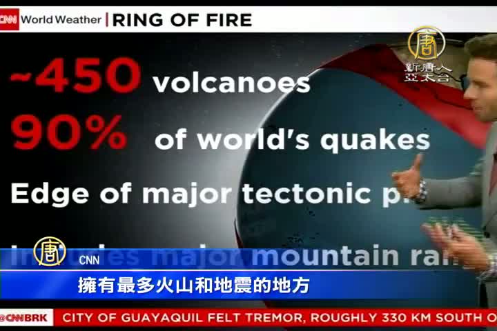 CNN:「這起地震芮氏規模7.8,當地時間晚上7點之前,震源深度19.2公里。再說一次震央距離首都基多只有300公里。重要的是,這位於火環帶上,這個區域是世界上擁有最多火山和地震的地方。」