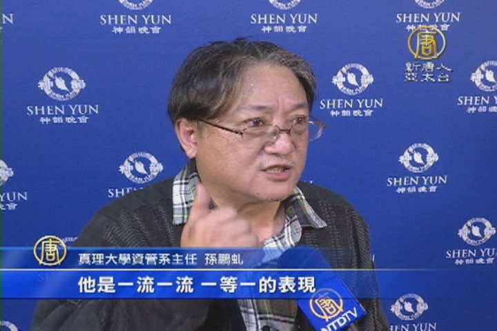 真理大學資管系主任 孫鵬?:「今天早上紛紛擾擾滿累的,我想說可能看到一半,中間可能會睡著,沒有,我沒有打瞌睡一下下,每個地方都目不轉睛的這樣看,而且看完以後感覺都不累。(看神韻)越看越有精神,看完以後精神煥發,這是很棒的!」