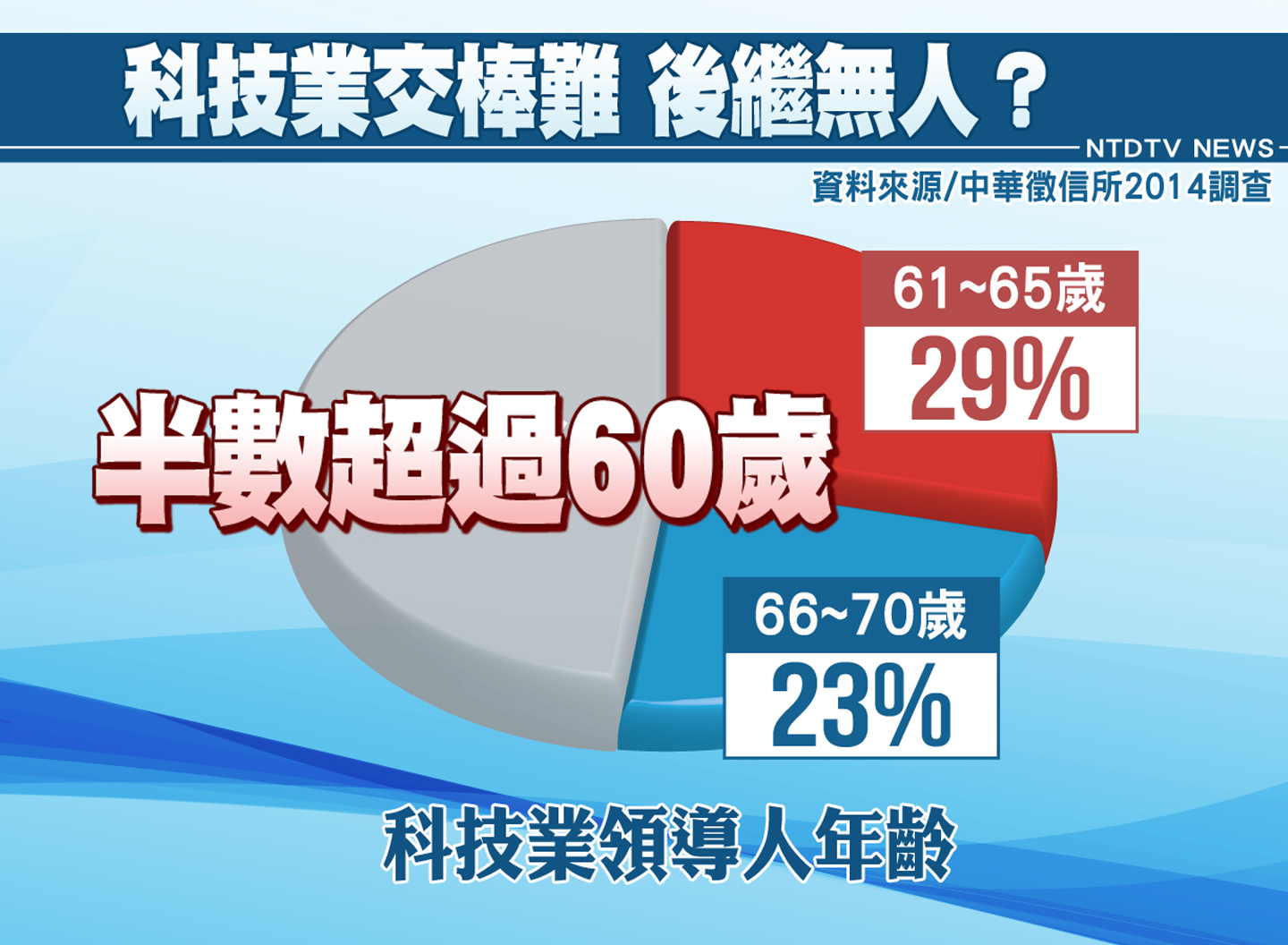 根據資料統計,科技業第一代領導者,普遍高齡化,竟有半數超過60歲,還後繼無人,成為警訊!