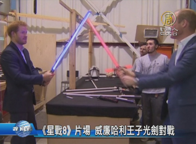 【新唐人亞太台 2016 年 04 月 20 日訊】英國劍橋公爵威廉王子與弟弟哈利王子,兩個人都是星戰迷,今天他們參觀《星際大戰8》片場,兩個人一拿到光劍,立刻變成童心未泯的小朋友一樣,現場對打了起來。