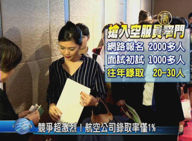 【新唐人亞太台 2016 年 04 月 23 日訊】財經訊息,帶您看到,有航空公司招募空服員生力軍,來台灣徵才,首要條件就是中英文流利,這次光是面試就有上千人,要從裡面錄取20~30人,錄取率超低,只有1%。
