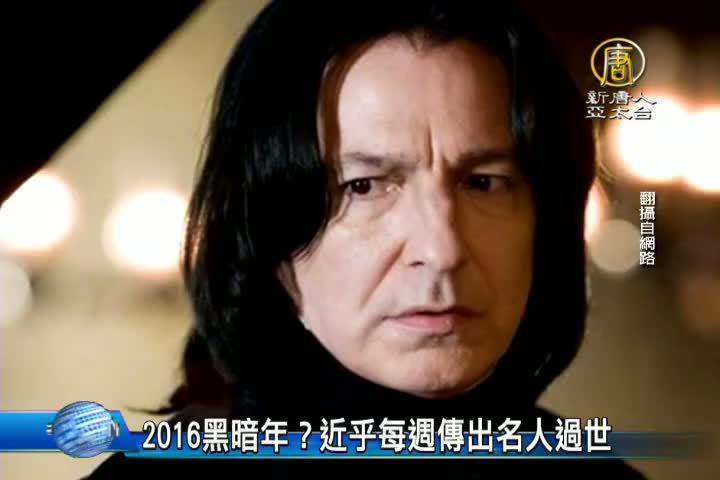 【新唐人亞太台 2016 年 04 月 23 日訊】英國廣播公司,BBC指出,2016是黑暗的1年,為什麼這麼說?因為2016,才過了4個月,卻幾乎每週都有名人過世的消息傳出。BBS就說,這可能與戰後嬰兒潮、和社群媒體的曝光率有關。
