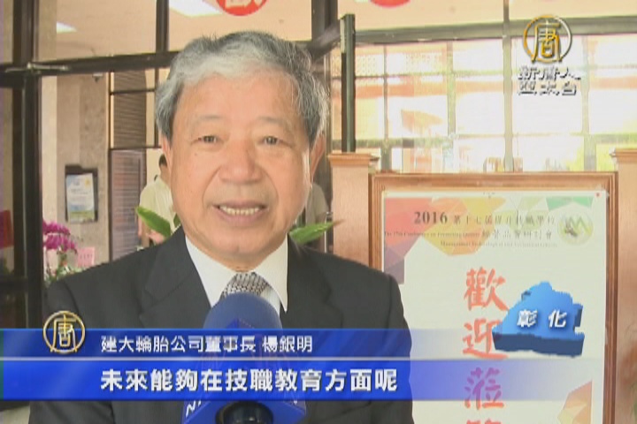 【新唐人亞太台 2016 年 04 月 24 日訊】彰化師範大學近期舉辦「技職學校經營品質研討會」,大會邀請到台灣輪胎業董事長楊銀明,分享經營理念,同時也以企業家的角度,強調台灣技職教育跟人才培養的重要性。