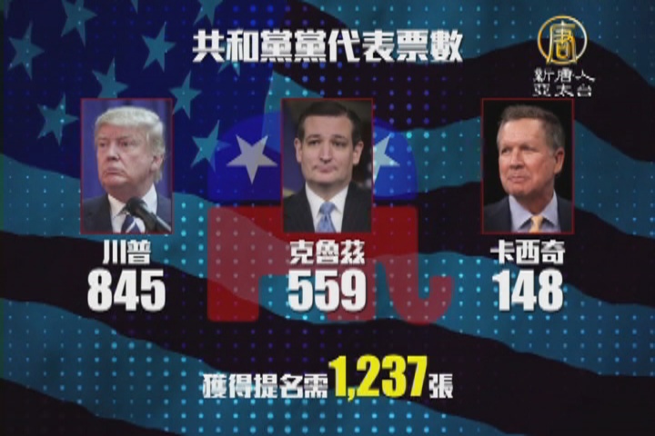 而共和黨的川普截至週一中午共拿到了845張票,比克魯茲與卡西奇的總和還多,距離共和黨要求的1,237張票的提名門檻最近。