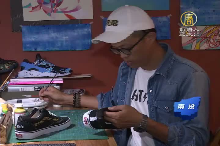 【新唐人亞太台 2016 年 05 月 01 日訊】南投埔里有一位喜歡彩繪的青年陳立儒,8年前他運用創意跟巧思,將素色球鞋塗上獨特的圖案及色彩,為球鞋注入新生命,許多民眾慕名請他彩繪,訂做獨一無二的客製化球鞋。
