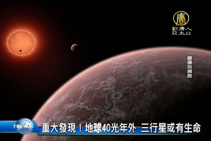 【新唐人亞太台 2016 年 05 月 03 日訊】來看到天文界的重大發現,《自然》雜誌新發表的研究指出,國際科學團隊,在離地球40光年的距離外,發現三顆類似地球的宜居行星,大小和溫度都可比擬地球與金星,可能適合維持液態水和生命。這是至今最有機會在太陽系以外找到生命體的星球。
