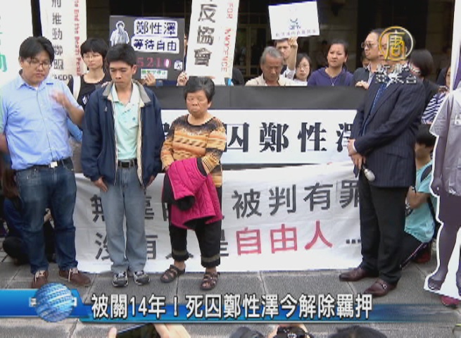 【新唐人亞太台 2016 年 05 月 03 日訊】14年前,鄭性澤捲入台中KTV殺警案,殺警案,被判死定讞,但就在今年台中高分檢提出新事證,認為兇手另有其人,主動替他聲請再審,台中高分院裁准全案再審,下午提訊鄭性澤召開羈押庭,合議庭庭訊後,裁定鄭性澤無羈押必要,只將他限制出境。鄭性澤將由檢方開釋票,在看守所放人。
