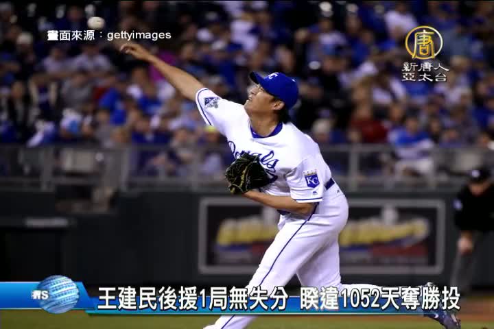 【新唐人亞太台 2016 年 05 月 04 日訊】皇家隊旅美投手王建民休息6天後,今天在主場對上國民隊,建仔後援1局,讓對手三上三下,沒有失分。9局下皇家隊上演逆轉秀,以再見安打 7比6獲勝。王建民相隔 1052天,將近3年時間,再度拿下勝投。建仔今天也飆出本季最快 94英哩,約151公里的伸卡球,賽後防禦率降到 3.24。