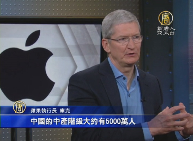 蘋果執行長 庫克:「我們在中國看到的是,那裡的中產階級正在急速增長當中。回溯到五年前,中國的中產階級大約有5000萬人,而在五年之後,那個數字會達到5億。」