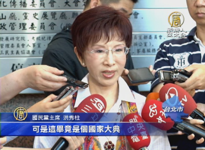 國民黨主席 洪秀柱:「這是國家的慶典啊!雖然我們今天很可惜很遺憾,我們沒有在大選上面國民黨失利,可是這畢竟是個國家大典,我們當然要參加,而且要予以祝福,希望新的政府上台之後,我們未來國家會更好。」