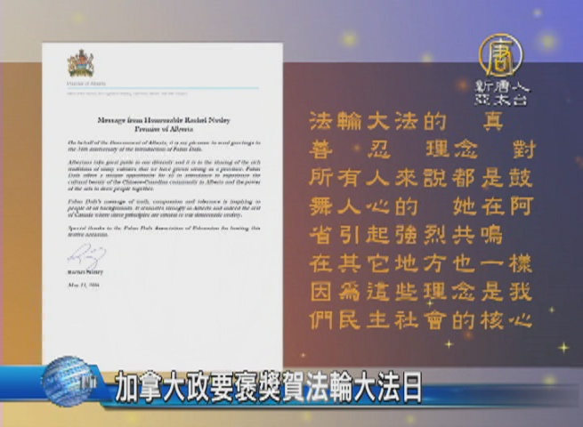 【新唐人亞太台 2016 年 05 月 07 日訊】帶您看到,加拿大各級政要和領袖人物,在日前,對「世界法輪大法日」,所發出的賀信和褒獎。