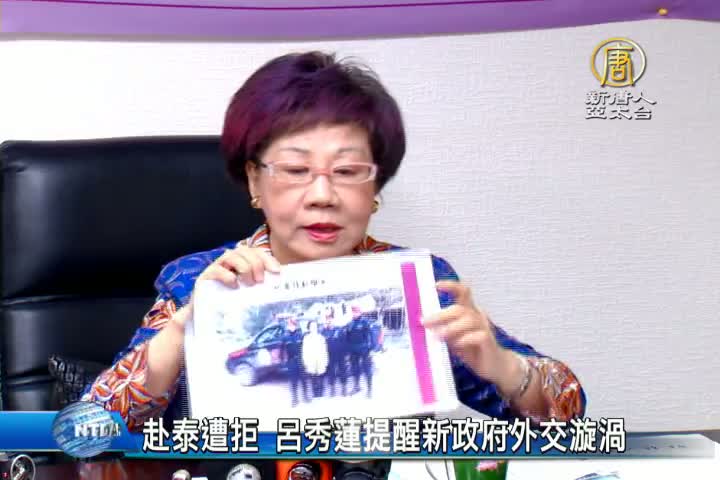 【新唐人亞太台 2016 年 05 月 07 日訊】前副總統呂秀蓮原定5月5日,前往泰國參加活動,但泰國外交部卻說無法自行決定她的簽證申請,須呈報泰國內閣同意,因此「暫緩核發簽證」,呂秀蓮也說,見微知著,新政府將上任前,顯然會出現過去不會碰到的事。