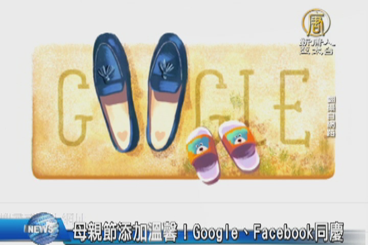 【新唐人亞太台 2016 年 05 月 08 日訊】今天是母親節,科技大廠Google和臉書也在自家網頁上共同慶祝。Google將自己的塗鴉牆放上一雙媽媽的大鞋子和一雙小朋友的小鞋子,還在媽媽的鞋底加上愛心,慶祝母親節。而臉書則是多加了紫色小花表情符號,按下去還會出現花海。同時,還在即時訊息加上小花邊框功能,增添母親節溫馨氣息。