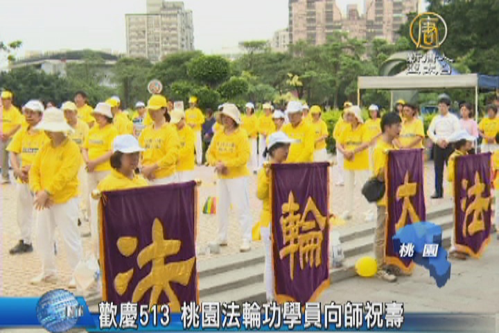 【新唐人亞太台 2016 年 05 月 08 日訊】每年的5月13是世界法輪大法日,世界各地的法輪功學員都會舉辦歡慶活動,周末(六)台灣桃園有數百位法輪功學員,提前歡度世界法輪大法日,向法輪功創始人李洪志先生祝壽,現場帶來許多精采熱鬧的表演,場面相當熱鬧溫馨。