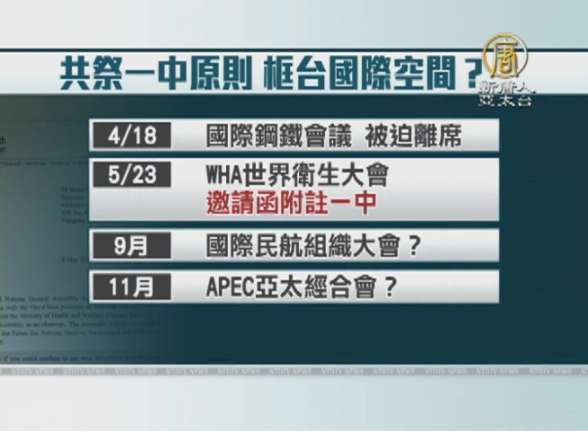 從4月國際鋼鐵會議被請出場,到5月WHA邀請函附註一中原則,中共處處打壓台灣國際參與,陸媒還點名接下來9月國際民航組織大會,11月的APEC亞太經合會,要以一中框限台灣的警告意味濃厚。