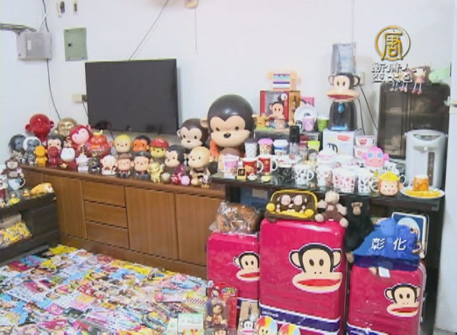 上萬件猴子娃娃、飾品、杯子衣服、排列整齊,幾乎佔滿了所有空間,也讓許郁菁成為名符其實的愛猴奇女子 。