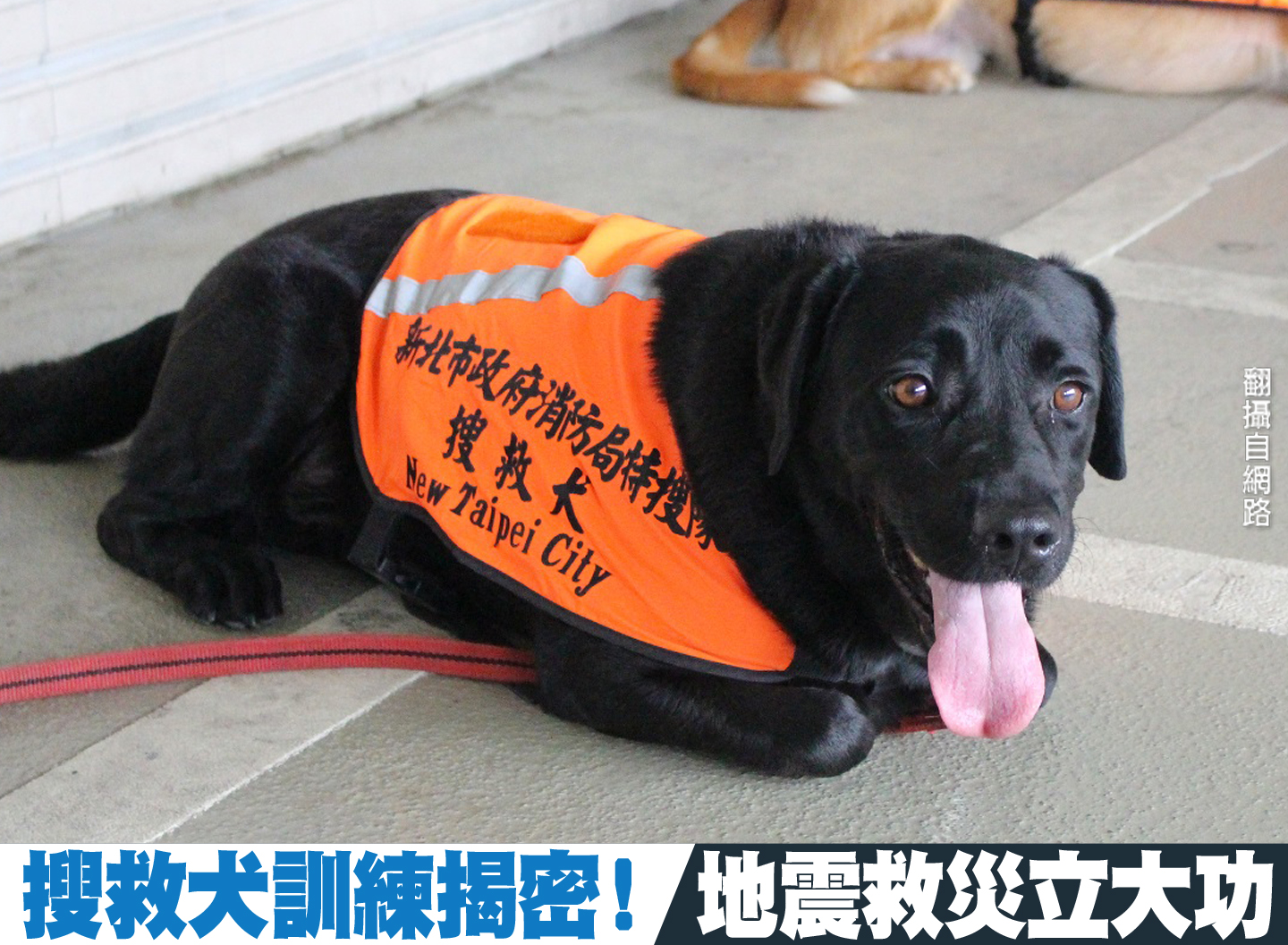 2016-04-16 20:54:17災害發生時,除了救難人員,訓練有素的搜救犬也身負重任,台中市在今年1月,成立搜救犬隊,3隻拉布拉多犬集訓兩個多月,已經能聽從基本的指令,目標是要通過明年的IRO國際搜救認證。