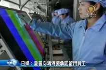 2016-02-14 20:52:18喧騰一時的鴻夏戀,夏普雖然還在日本官民基金產業革新機構與鴻海之間舉棋不定,但傳出,夏普方面希望鴻海能保證不裁員。日本產經新聞引述消息人士報導,夏普向鴻海要求,在提出援助提案後,鴻海必須出具書面承諾,將保留夏普現有員工。上周鴻海董事長郭台銘曾表示,不會裁減夏普40歲以下的員工。是否考慮接受夏普的要求,目前還沒有進一步回應。