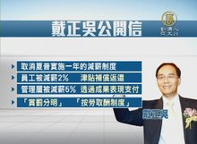 2016-08-22 20:15:45鴻海集團正加速夏普重建腳步,夏普新社長戴正吳,在大阪連續兩天召開戰略大會,對面板、家電、太陽能電池等三大項目擬定戰略;戴正吳還宣布,取消夏普的員工減薪制度,並放棄自己擔任夏普董事的薪資,賞罰分明。