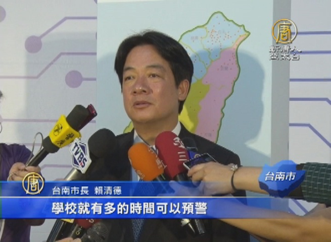 台南市長賴清德:「這套設備裝置之後,學校就有多的時間可以預警,可以知道地震即將來襲,可以讓學生有很好的躲避機會,可以降低傷亡。」