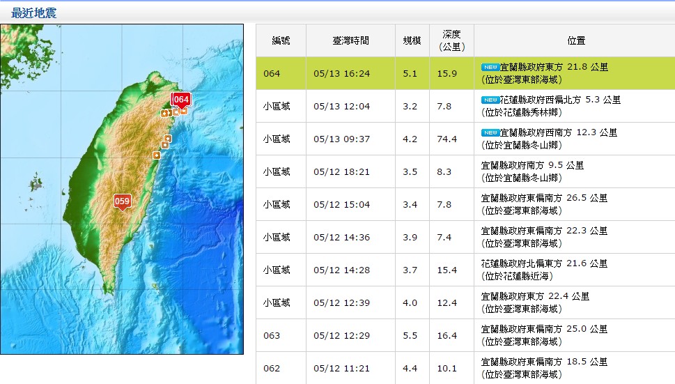 【新唐人亞太台 2016 年 05 月 13 日訊】05/13 16:24 規模5.1 深度15.9(公里)