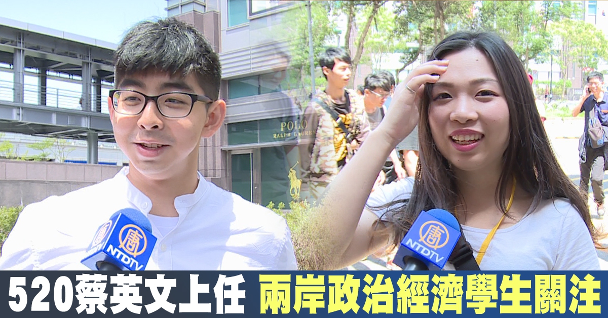 【新唐人亞太台 2016 年 05 月 13 日訊】不到10天,將進行政權交接,我們記者實際走上接頭,看看台灣的設計系學生,對於台灣第一位女總統蔡英文,有甚麼期待,忙於課業的學生,對於台灣經濟、兩岸政治,都有自己的看法。