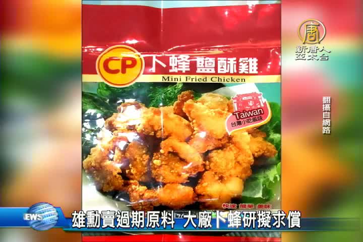 【新唐人亞太台 2016 年 05 月 18 日訊】台中「雄勳公司」涉嫌在廠內囤積過期的食品原物料與調味劑,受害下游公司,包括食品大廠卜蜂公司,卜蜂公司在將產品下架後,現在也決定對雄勳求償,雄勳公司昨天遭南投衛生局查封,禁止出貨並暫停生產,卜蜂公司表示,正在研擬向雄勳求償。另外經過調查,雄勳公司的前身汎昇公司,就是2008年進口中國都慶的奶粉被驗出三聚氰胺,遭下游廠商金車食品求償上億元。汎昇後來歇業、改名為恆達,二度改名為雄勳。