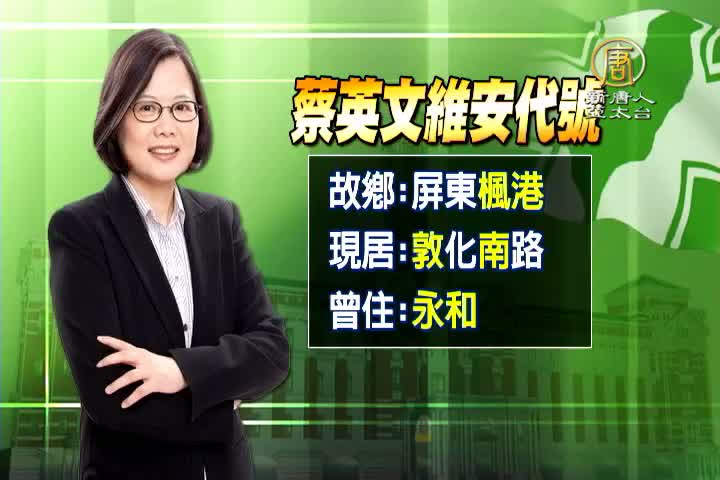 【新唐人亞太台 2016 年 05 月 18 日訊】準總統蔡英文的維安警衛室命名拍板定案,取名為「永和」,因為她有一個家是在永和,也有「永保和平」的意味。以往正副元首的警衛室代號,通常會從地名來命名,前總統陳水扁稱呼「玉山」,不過馬總統是「中興」,有「少康中興」的意味。