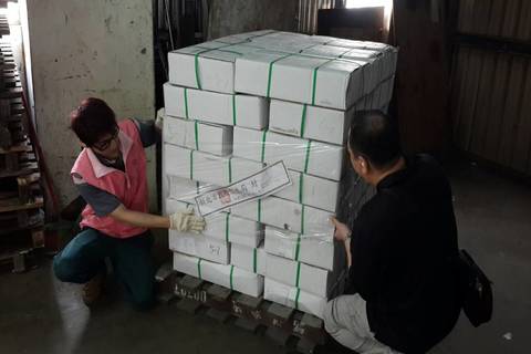 新北市衛生局派員封存漁洋公司違規產品。(新北市衛生局提供)