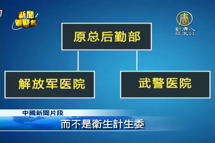 中國新聞片段:「解放軍醫院和武警醫院,性質特殊,因部隊需要而存在,其主管部門是原總後勤部,而不是衛生計生委。」