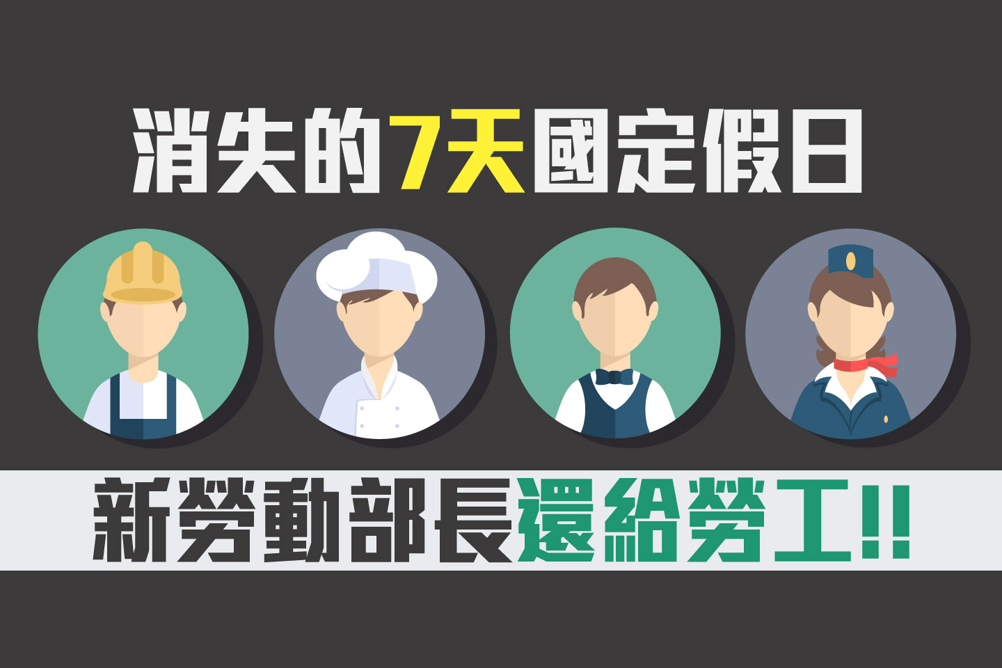2016-06-20 23:06:21勞工消失的七天假,現在可望回復了!立法院將前朝的勞動基準法施行細則退回勞動部,決定「不予備查」,代表這七天假會還給勞工,行政院明天將正式公告,最快教師節,勞工就可放假,當然對此,工商界、教師界也有話要說。