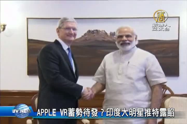 【新唐人亞太台 2016 年 05 月 25 日訊】蘋果執行長庫克在今年初的時候曾表示,對於虛擬實境相當感興趣,卻從未鬆口說 蘋果會朝這個領域發展。不過上周,庫克訪問印度,除了拜會印度總理莫迪,也和當地一些名人、寶萊塢明星見面。寶萊塢著名演員 埃朗哈斯米,就在推特上發表了他與庫克的合照,還說對APPLE VR充滿期待,外界猜想,是不是已經聽到什麼風聲,也讓外界對下個月登場的蘋果全球開發者大會充滿期待。