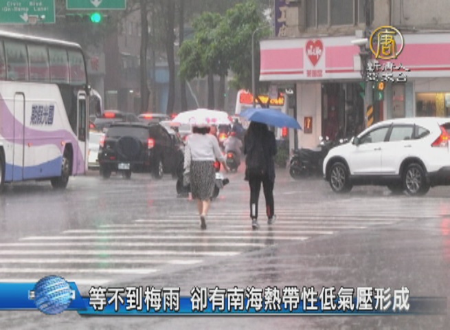 【新唐人亞太台 2016 年 05 月 26 日訊】已經5月底了,卻還沒有梅雨季的到來!根據統計,往年梅雨大多開始於5月中下旬,不過在今年5月底前,依然沒有鋒面報到的情況,今年梅雨季,恐怕將創下16年來的最晚紀錄。雖然等不到梅雨,但南海卻有熱帶性低氣壓形成,氣象局表示,未來不排除會增強成颱風。