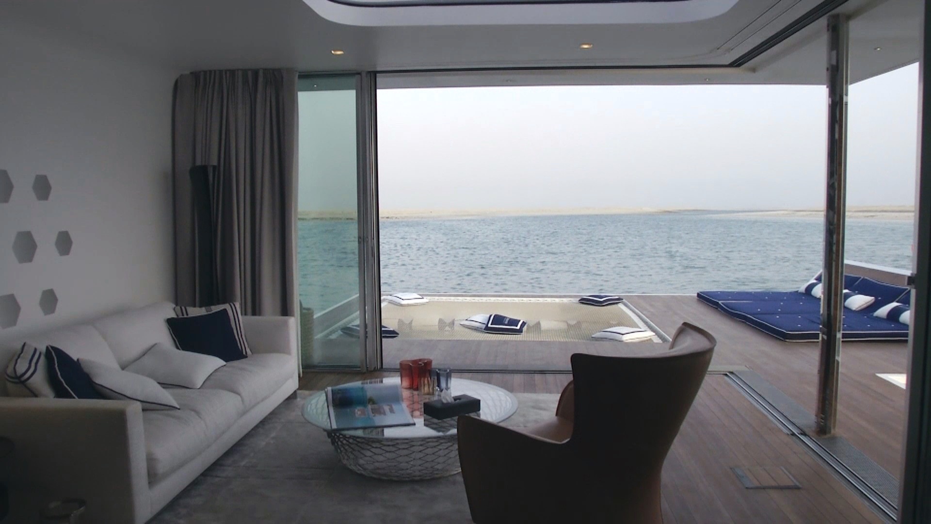 水面上方,就是面朝大海、視野寬闊的客廳。