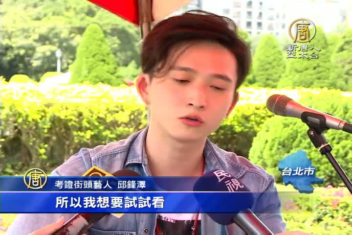 考證街頭藝人 邱鋒澤:「想用各種各樣的方式、平台,把我的音樂傳達出去,所以我覺得街頭表演,是一個很新鮮的感覺,對我來說,所以我想要試試看。」