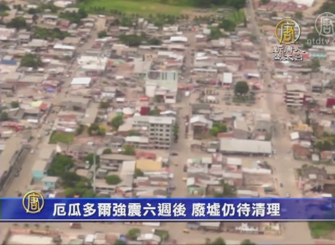 【新唐人亞太台 2016 年 05 月 30 日訊】國際新聞,來看到,厄瓜多爾7.8級強烈地震,造成超過650多人死亡,大約7千人受傷,雖然已經過去了六個星期,面對兩千棟建築物被毀壞,三萬人流離失所,都仍舊等待善後處理。