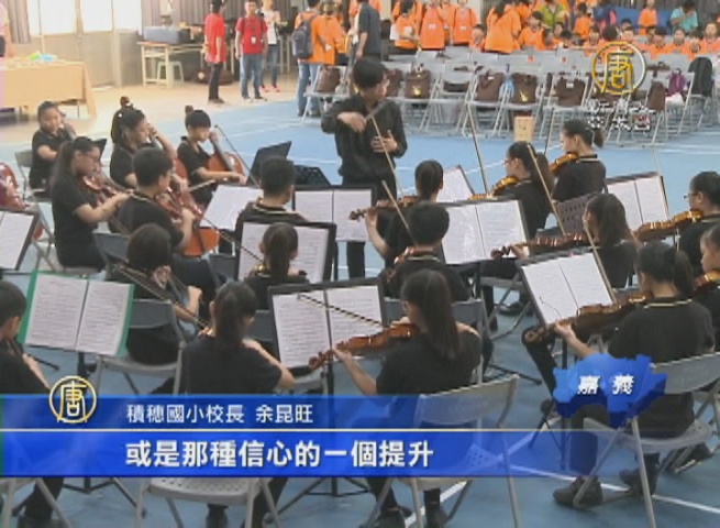 【新唐人亞太台 2016 年 05 月 30 日訊】新北市積穗國小校長余昆旺,日前帶領弦樂團師生90人,來到嘉義縣新港國小,進行一場別開生面的音樂對話,雙方以樂會友,精湛的技藝贏得滿堂喝采 。