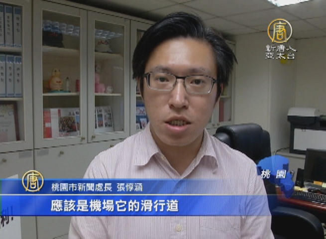 桃園市新聞處長 張惇涵:「經過我們初步的了解,應該是機場它的滑行道以及排水的工程尚未完成,也未臻完善,導致地面淹水的狀況,我們了解是,地勤人員也花了超過1個小時的時間來排除。」