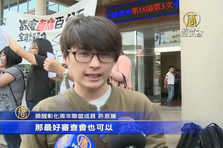 喚醒彰化青年聯盟成員 許恩騰:「(議會)我們可以線上直播這部分,我們昨天議會算已經做到了,我們另外還可以希望可以達到審查會的那個資料也可以公開,那最好審查會也可以同步像立法院這樣可以在審查委員會裡面,都可以直播,直播可以給我們縣民以及公民知道。」彰化縣議會議長 謝典霖:「(什麼時候做呢)七月中吧,七月中,你們可以在,我們臨時會開完以後,你們來看,合不合乎大家的要求,但是我們也經要做的時候,我們不要接受你們的請願。」議長謝典霖接受訪問後,進入縣議會開會,並沒有接受陳情書,現場警方進行協調,現場陳情民眾說,不排除還會有後續陳抗活動。