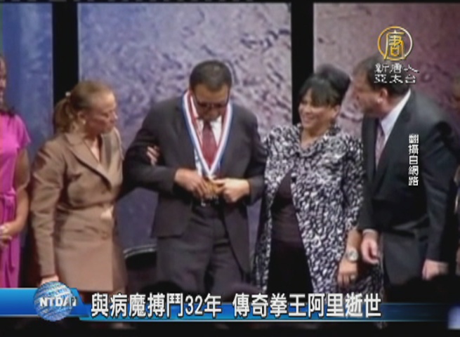 【新唐人亞太台 2016 年 06 月 04 日訊】歡迎回來。國際重要消息。首先來看到,傳奇拳王穆罕默德‧阿里在今天逝世。阿里與病魔搏鬥32年,這周阿里因為呼吸道疾病入院治療,不料病況惡化,在醫院辭世。享壽74歲。