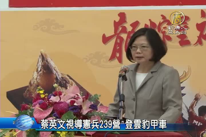 【新唐人亞太台 2016 年 06 月 07 日訊】總統蔡英文上午前往台北憲兵239 營區視導,同時慰勉官兵。蔡英文並登上雲豹甲車,繞行營區,隨後與營區官兵餐敘,發表談話。