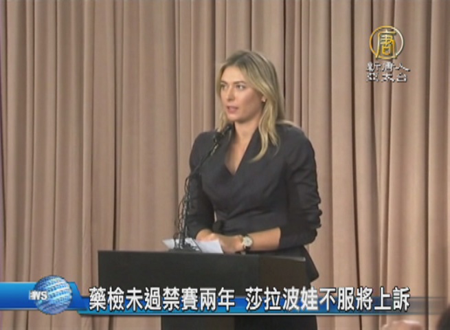 【新唐人亞太台 2016 年 06 月 09 日訊】歡迎回來。俄羅斯女網好手莎拉波娃使用禁藥一案,經過3個月調查,國際網球總會宣布,莎拉波娃因未通過藥檢,確定禁賽2年,莎拉波娃確定無法參加今年8月的里約奧運,等到2018年1月解禁時,她已經32歲,恐怕職業選手生涯也接近尾聲,莎拉波娃已經表示將繼續上訴。