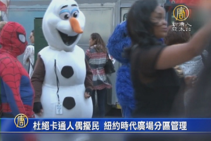 【新唐人亞太台 2016 年 06 月 10 日訊】在紐約時代廣場上,有扮成卡通動漫人物 與遊客拍照後收錢 發生爭執,讓很多民眾抱怨連連。現在紐約市政府決定要分區管理。這些人偶只能在指定範圍內活動。