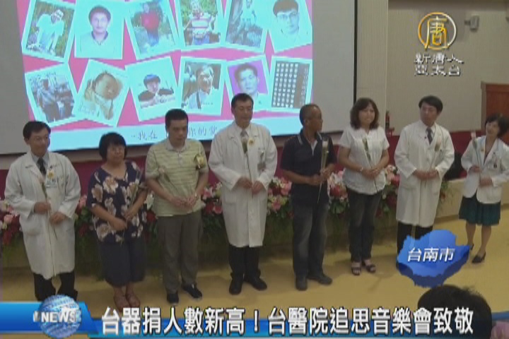 【新唐人亞太台 2016 年 06 月 10 日訊】台灣去年有264人捐贈器官,共有947名受惠者,器捐與受惠人數雙雙創下近10年新高。台南一家醫學中心,星期三(8日)舉辦器捐追思音樂會,向受贈者及捐贈家屬表達感激之情。