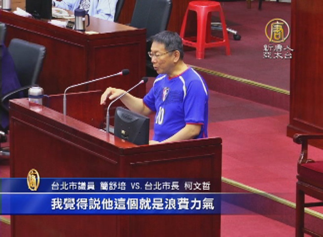 台北市議員 簡舒培VS.台北市長 柯文哲:「你怎麼認為,你覺得他這樣可以嗎?我覺得說他這個就是浪費力氣,就是說你不要在老是在外面,他這個有沒有涉嫌汙辱公署?反正我也沒有在理他。」